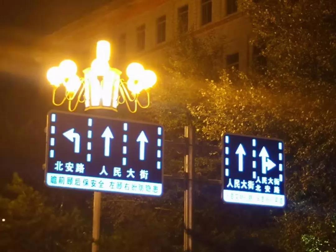 據(jù)咱們工程師介紹,本次在人民大街共安裝了83套指路標志、車道指示標志,在夜晚光度柔和、筆畫飽滿,讓出行的長春市民們體會到科技帶來的舒適體驗。為保障城市道路交通秩序安全、提升交通環(huán)境品質(zhì),長春市公安局交通警察支隊陸續(xù)實施城區(qū)主次干道與快速路的交通標志功能性提升工程。該項目創(chuàng)新點在于:一是新型交通標志是由節(jié)能高效的LED混光定向光源板,透過具備高透光率的微棱鏡晶體型反光膜顯示出文字圖案信息,確保了全天候交通環(huán)境中的可視可讀;二是提高了交通標志在路燈照明、城市亮化環(huán)境中的信息重要性;三是內(nèi)置物聯(lián)網(wǎng)卡提供了全壽命周期管理的可靠性,為智能網(wǎng)聯(lián)汽車提供通訊接口。