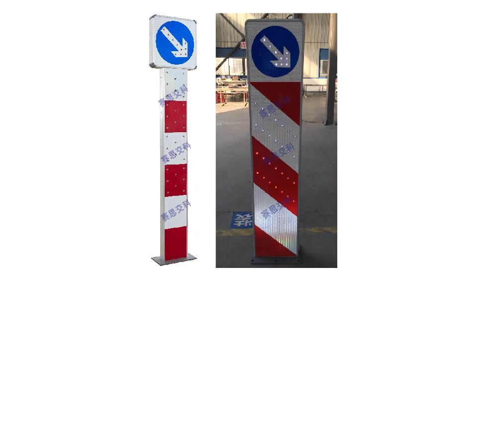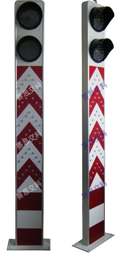 2、基本說(shuō)明:一體式柱體結(jié)構(gòu),標(biāo)志版面圖案中設(shè)置紅滿屏燈、紅滿屏燈,交替閃爍,柱體上設(shè)置警示發(fā)光管,采用太陽(yáng)能蓄電池供電,設(shè)置于危險(xiǎn)路段分道、高架匝道上下口等。