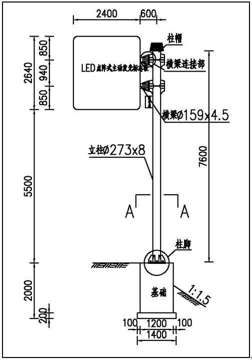 在交通標志升級改造工程中,有時候,需要對現有標志桿件進行結構驗證,計算將普通標志更換為主動發光標志后,現有桿件是否還能適應結構承重。本文例舉2400mm*2640mm的點陣發光標志的配套桿件(立柱:273mm*8mm*7600mm;懸臂:159mm*4.5mm*3180mm*2根),以供同行參考。