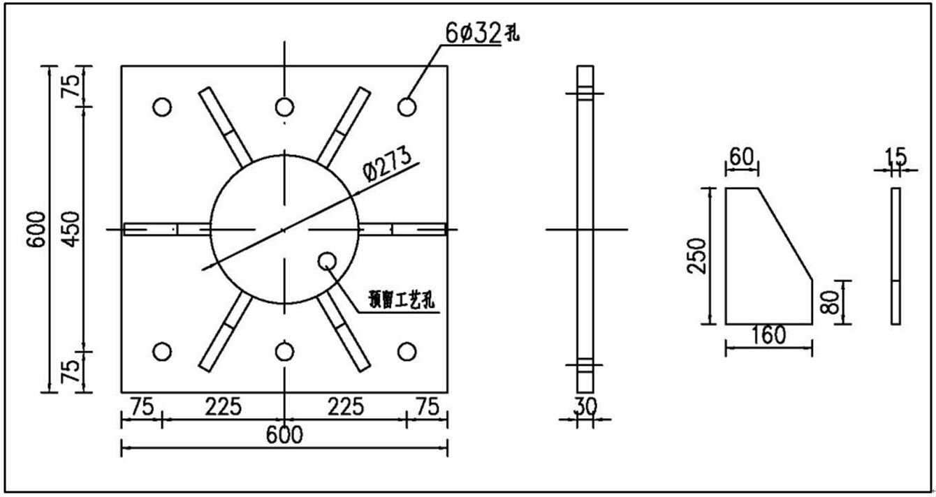 地腳螺栓支撐加勁肋的高度和厚度為: