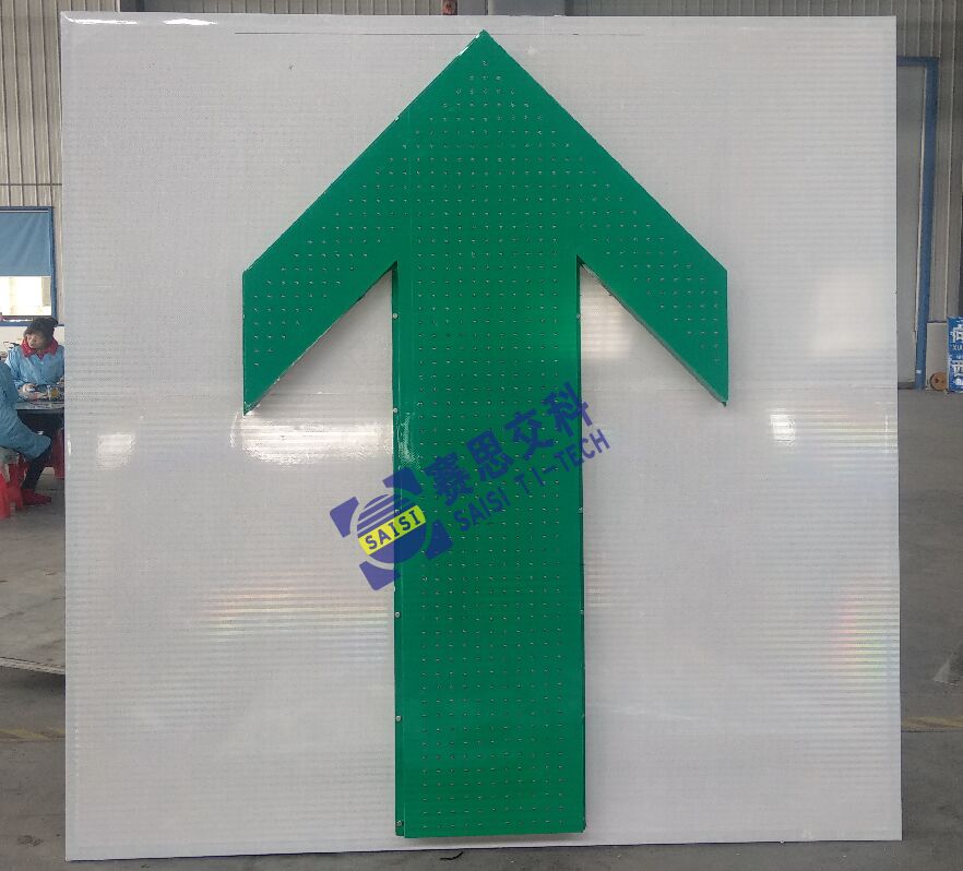 技術(shù)參數(shù):尺寸2000mm*2000mm;白底、綠圖案、綠色LED管;LED點(diǎn)陣式主動發(fā)光標(biāo)志;太陽能供電或外接市電。
