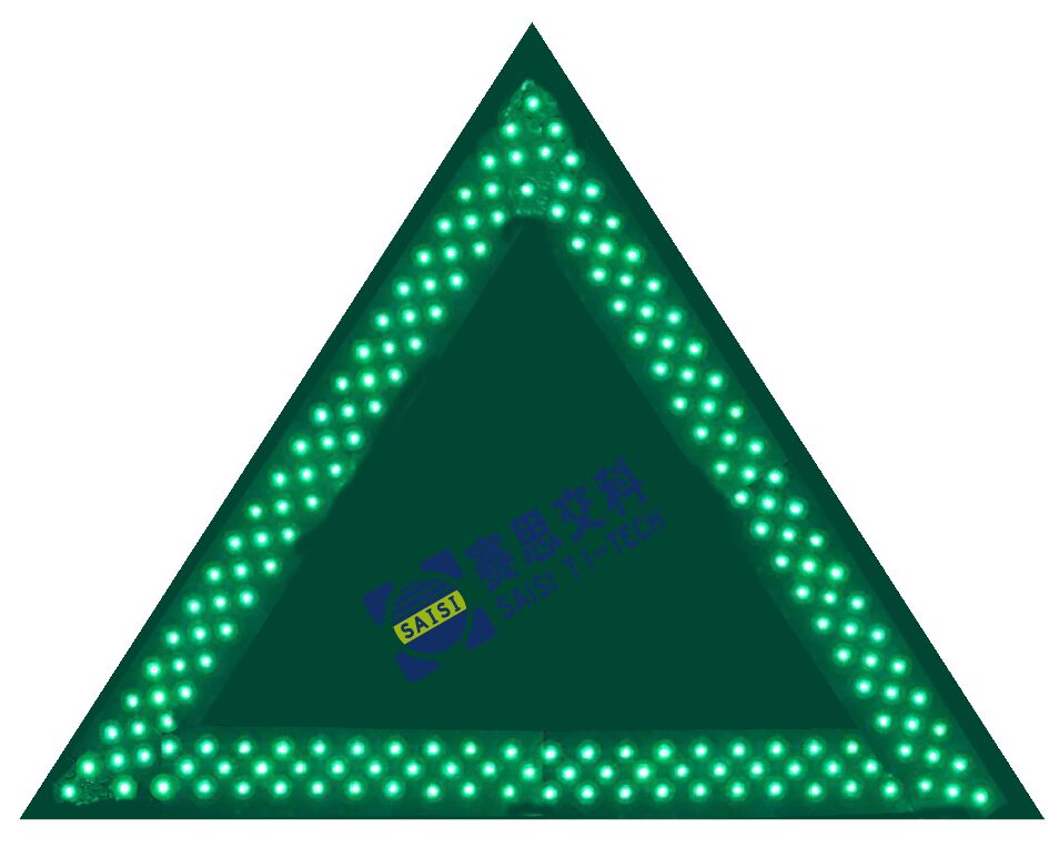 技術(shù)參數(shù):三角2400mm;綠底、無圖案、綠色LED管;LED點(diǎn)陣式主動發(fā)光標(biāo)志;太陽能供電或外接市電。