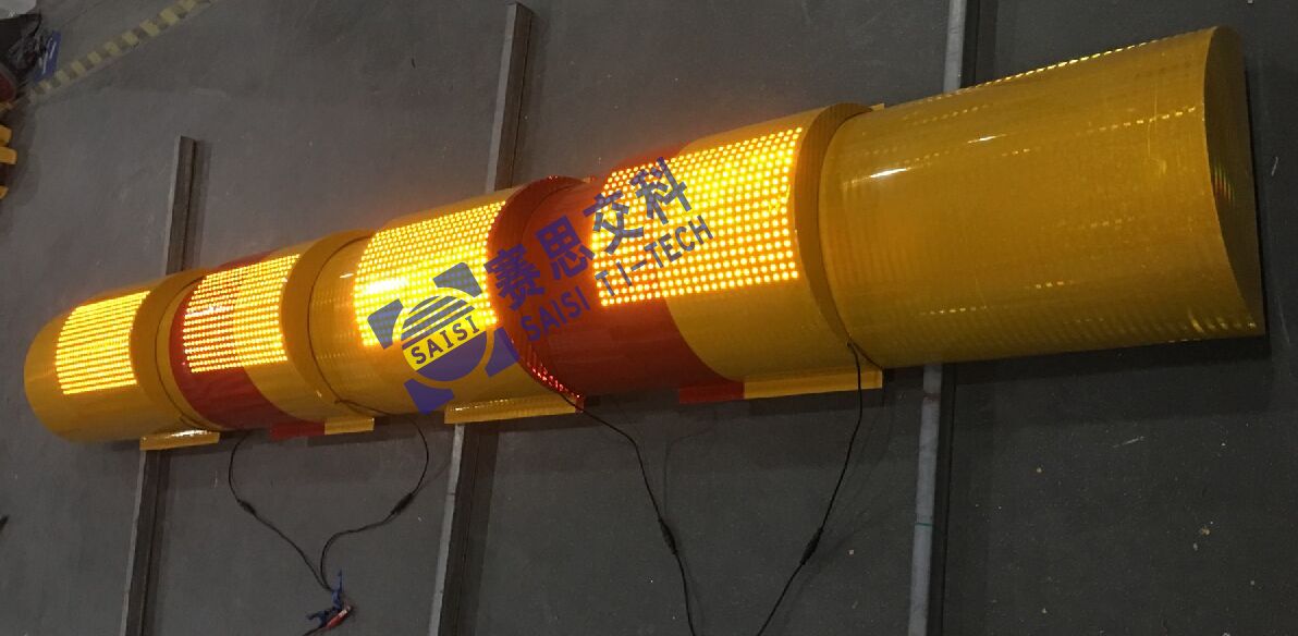 參考尺寸:4000mm*400mm;紅黃相間底膜,紅黃LED管;LED點(diǎn)陣式主動發(fā)光標(biāo)志;太陽能供電或外接市電。