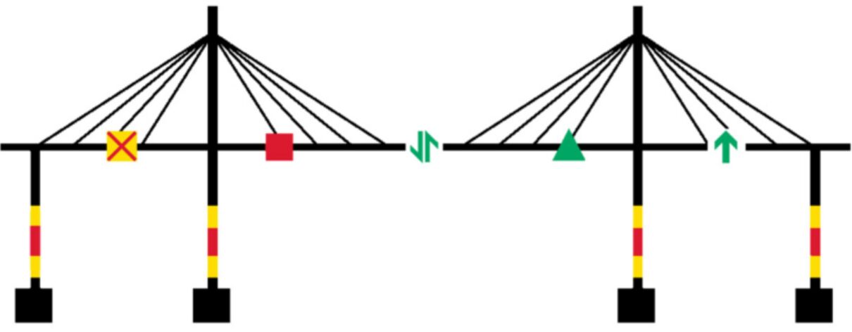 在國標(biāo)《中國海區(qū)可航行水域橋梁助航標(biāo)志》(GB24118-2009)中列出了兩種類型的通航橋孔:雙向通航橋孔和單向通航橋孔,并根據(jù)不同的通航橋孔給出了對應(yīng)的設(shè)置標(biāo)準(zhǔn)。