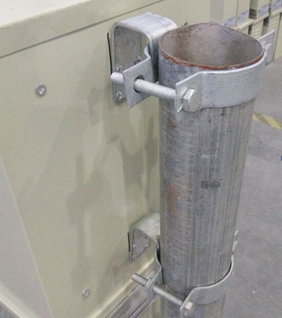 3、控制機箱通常設置于標志立桿底法蘭朝上約2.5米處,使用半片對夾抱箍固定,注意查看配套螺桿,另不同標志尺寸、發光面對應不同的控制機箱,選擇時應仔細核對對應標簽。