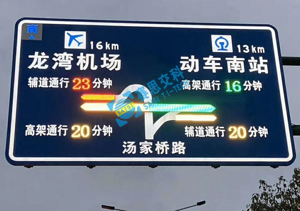 隨著城市道路路網的不斷拓展,城市的外圍格局不斷延伸,機動車逐步成為家庭的代步工具,極大地提升了人們的出行距離,城市快速路的遠距離傳輸功能越來越明顯,在保證了道路交通安全的前提下,交安設計師們還需要站在交通路網、交通流的整體分布下,通過區域交通流的引導,合理優化交通流分配,實現整體路網的交通流量均衡;面對擁堵狀態下的,區域合理交通分流、路徑規劃,智能型主動發光標志正是為實現此功能而創新研發。