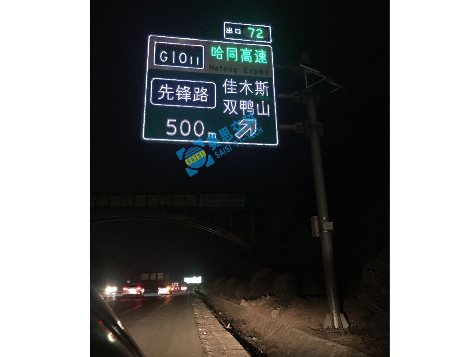 本次開發(fā)的“限速發(fā)光標志”,除采用高亮LED發(fā)光管勾勒標志數(shù)字、外圈,形成主動發(fā)光效果,提升了標志在惡劣天氣中的視認度,也增強的整體的發(fā)光警示效果,同時,還配備了專用智能雷達測速設備,對檢測路段的車輛實時進行速度檢測,并將檢測值反饋在標志版面下方的"8"字條形碼中,最終組合成:“檢測車速式限速發(fā)光標志牌”,車輛當前行駛車速與上方的限速標準值進行對比,低于限速,車速值采用綠燈顯示;高于限速,則采用紅燈顯示,加強了警示效果,給超速駕駛員形成威懾效果。