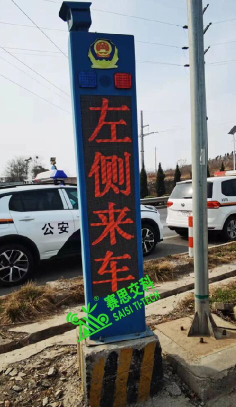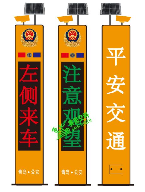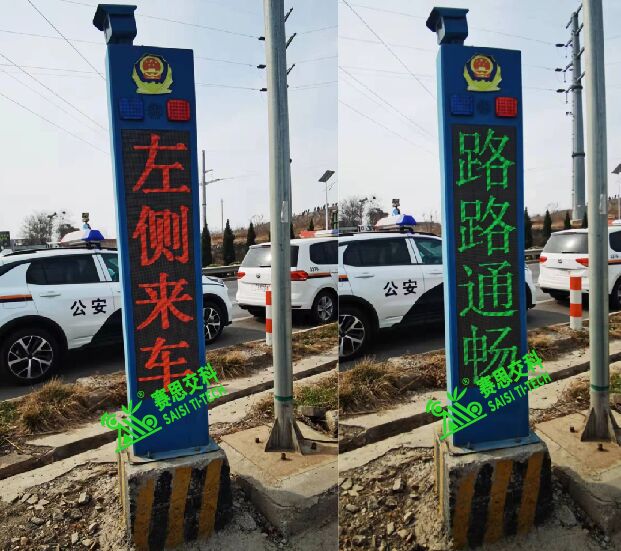 工作原理:當支線檢測到有車輛或行人,將信息傳輸給主線裝備,設置于主線的智能預警哨兵裝備,顯示屏紅色顯示"右側來車",語音播報:"右側來車,請減速駕駛!",暴閃燈交替頻閃;當主線檢測到有車輛時,將信息傳輸給支線裝備,設置于支線的智能預警哨兵裝備,顯示屏紅色顯示"左側來車",語音播報:"左側來車,請減速通行!";暴閃燈交替頻閃。常態下:顯示屏滾動綠色顯示"超速駕駛,易出禍端;文明駕駛,安全陪伴",關閉語音播報,暴閃燈頻閃。本公路叉口智能預警哨兵裝備,能實現主線與支路實現車輛動態信息的實時互動,通過聲光電的全方位,立體式多重預警,提升公路叉口的交通安全等級,降低事故發生率,避免交通參與者的人員傷亡和財產損失。