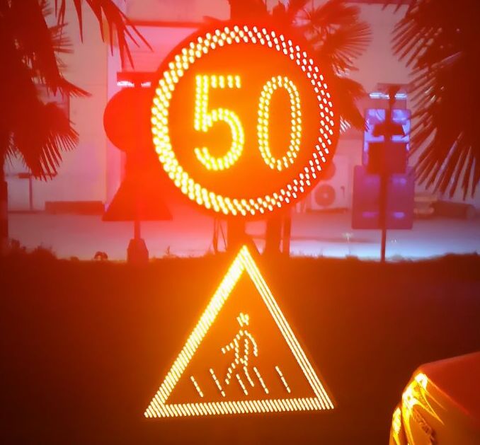 另外,全線沒有明顯發現限速標志,可能有,但我覺得,這么復雜的道路線型,絕對不應該在不顯眼的位置設置一塊就了事,而是多次重復性設置,加強警示。也沒明顯發現禁止超車的禁令標志。路段全線,照明條件不佳,如果有條件,應當設置必要的主動發光標志、爆閃標志,來提升標志的遠距離視認性,和警示性。下圖左:太陽能限速、注意行人發光標志;下圖右:爆閃注意行人發光標志。