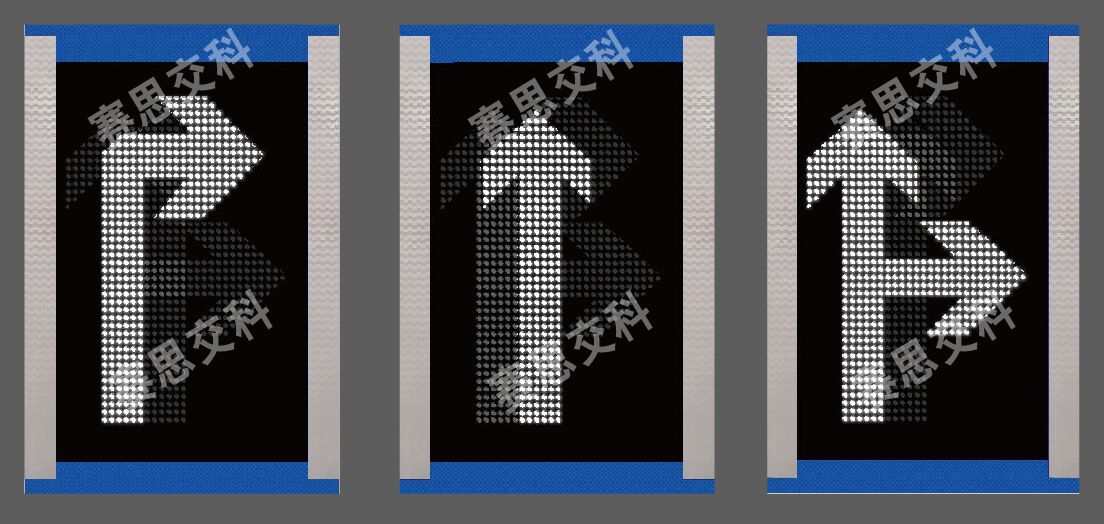 可變車道,通常在車道上方設(shè)置一塊“可變車道標(biāo)志”,該標(biāo)志采用LED密集點(diǎn)陣布點(diǎn),最多一塊標(biāo)志版面可以顯示三種箭頭圖案(常見組合有:右轉(zhuǎn)+直行+直右;左轉(zhuǎn)+直行+直左),根據(jù)交叉口不同時(shí)段的車輛轉(zhuǎn)向需求變化,分時(shí)段切換版面圖案,其實(shí)現(xiàn)技術(shù)有:遠(yuǎn)程遙控、時(shí)鐘自動(dòng)切換、聯(lián)網(wǎng)聯(lián)控、信號(hào)相位分配等方案。地面應(yīng)配合施劃對(duì)應(yīng)的“可變導(dǎo)向車道標(biāo)線”。