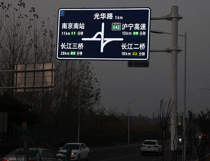 全透式內置照明標志,或“全透式內置照明標志牌”、“全透主動發光標志牌”,其工藝技術、制作標準是遵行著行業標準《內部照明標志》(JT/T750)的相關要求。成品的全透式內置照明標志,是一個具備較高“防塵防水”系數的框體結構,背板采用鋁材或鍍鋅板材,保證長久經歷戶外的低溫暴曬、雨霧侵蝕而不會生銹的品質;其四周的抱邊結構,采用專用型材定制而成,及夾層空隙尺寸與面板厚度尺寸無縫對卡,是保證高等級IP值的一項重要工藝條件;其面板層,采用專用的抗高低溫專用透光聚酯材質,在膨脹、收縮系數方面,與專用透光反光膜背膠層保持一致,如此,才能保證在冬季,發光膜面層不至于收縮受阻而出現皸裂;在夏季高溫時,不至于拉伸起鼓。