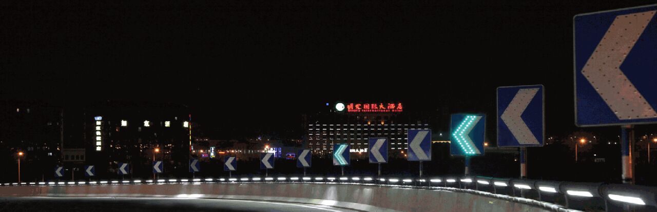 2、在道路兩邊護欄上安裝LED發光輪廓標,可以指示道路兩側邊緣距離參考,同時,連續的點陣形成線型輪廓,顯示道路可通行軌跡。
