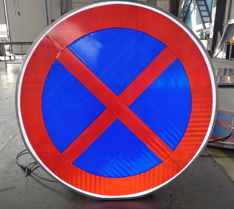 標志版面整體發光,對于禁令、警告類有紅、黃、黑等深色系列反光膜的,能通過版面中的白色透光膜來反襯圖案,標志整體發光面柔和,適合亮化、景觀等暗環境中的發光點綴。