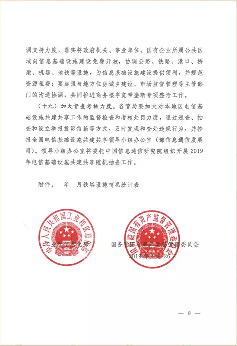 工信部發(fā)文:《關(guān)于2019年推進(jìn)電信基礎(chǔ)設(shè)施共享的實施意見》